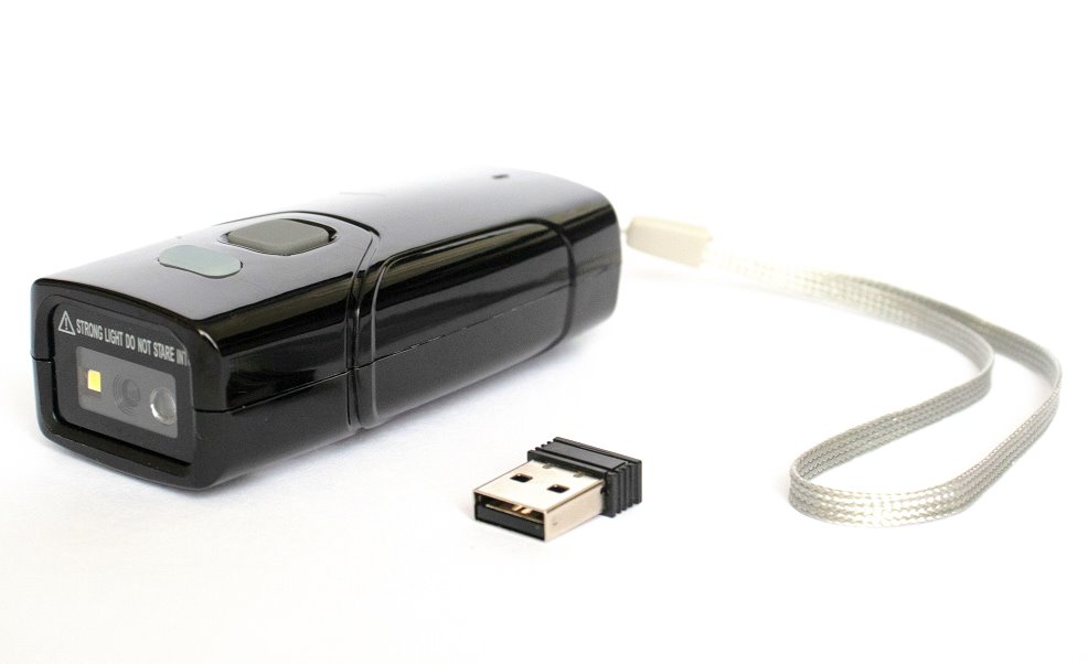Obsah balení: čtečka čárových kódů, USB 2,4GHz přijímač, USB nabíjecí kabel, pásek na zápěstí, návod. Bluetooth adaptér není součástí balení.
