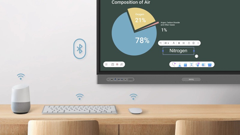 Připojení adaptéru WD02AT k interaktivnímu displeji vám umožní používat Bluetooth zařízení jako klávesnice, myši a reproduktory bez spletitých kabelů.