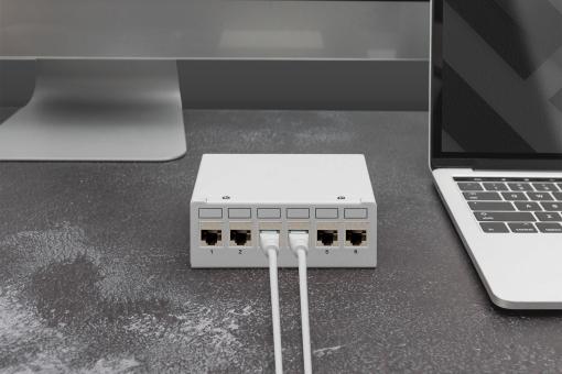 DIGITUS Modular Desktop Patch Panel, shielded 6-port, light grey